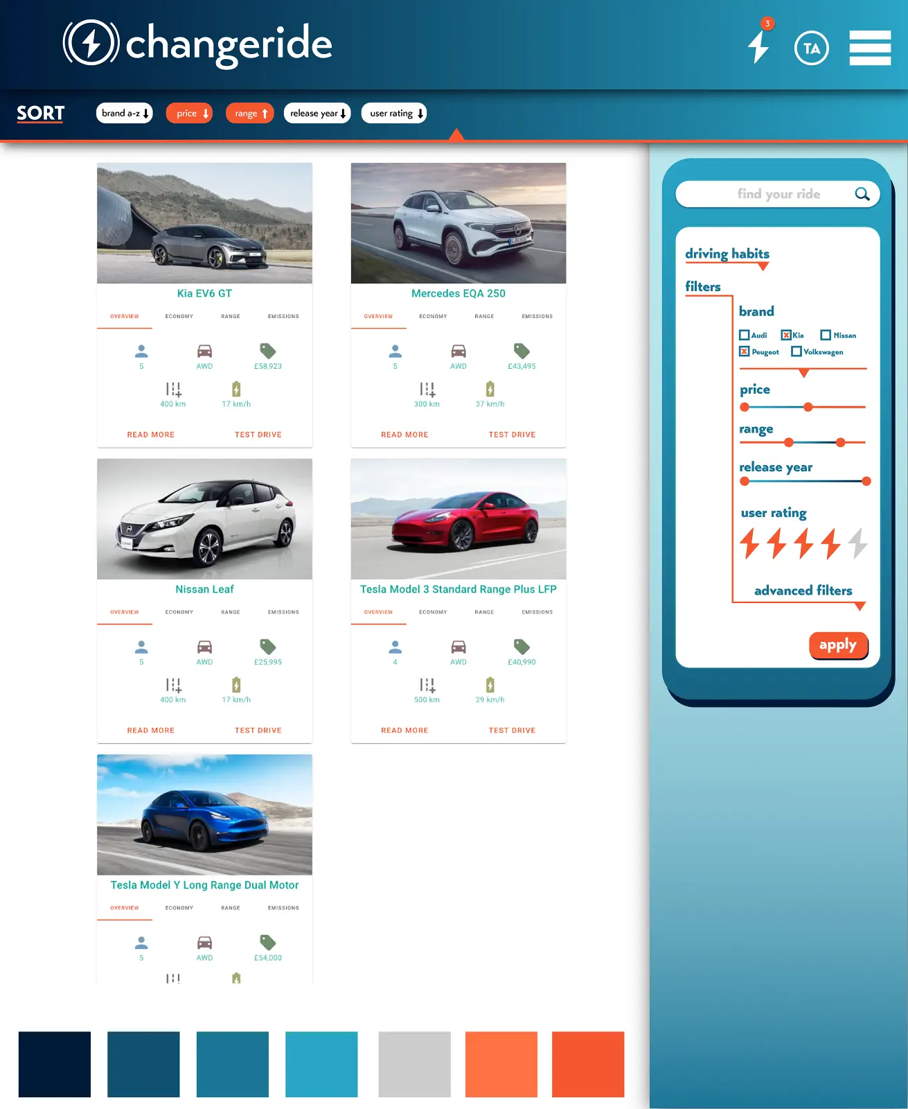 Tidlig i prosessen ble det lagt stor vekt på å forstå både brukerbehov og funksjonalitet. Sammen med Changeride jobbet vi med å definere hvordan tjenesten skulle oppleves, både visuelt og teknisk, og hvordan brukerne skulle guides gjennom valg og sammenligning av elbiler.